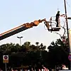 Yasakların başlamasıyla birlikte belediye görevlileri pankart ve afişleri asıldıkları yerden toplamaya başladı.