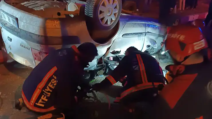 Refüje çarpan otomobil, ters döndü 1 ölü, 1 yaralı