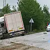 Refüje çarpan tır yoldan çıktı: 1 yaralı