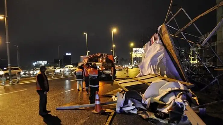 Şiddetli poyraz nedeniyle, Çağlayan'da büyük reklam panoları E-5 Karayolu'na uçtu. D-100 karayoluna düşen reklam panolarını kaldırma çalışmaları gece saat 03.00 sıralarında tamamlandı.
