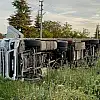 Reklam tabelasına çarparak devrilen tırın sürücüsü yaralandı
