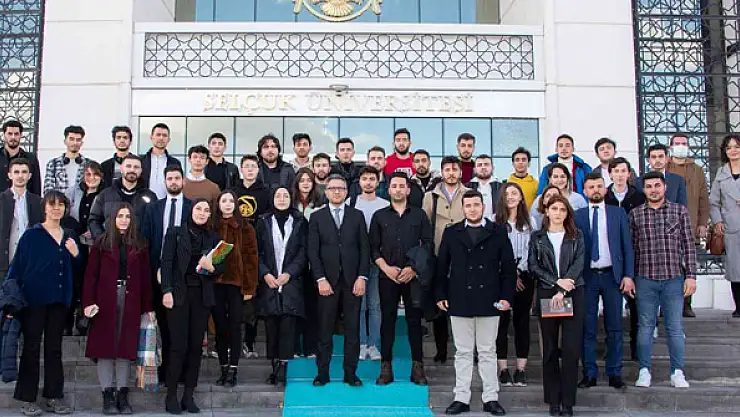 Öğrenci temsilcileriyle bir araya gelen Selçuk Üniversitesi Rektörü Prof. Dr. Metin Aksoy'a; Rektör Yardımcısı Prof. Dr. Ahmet Tuğrul Polat, Genel Sekreter Prof. Dr. Kamil Beşoluk ve Selçuk Üniversitesi Öğrenci Konseyi Başkanı Alper Selçuk eşlik etti.