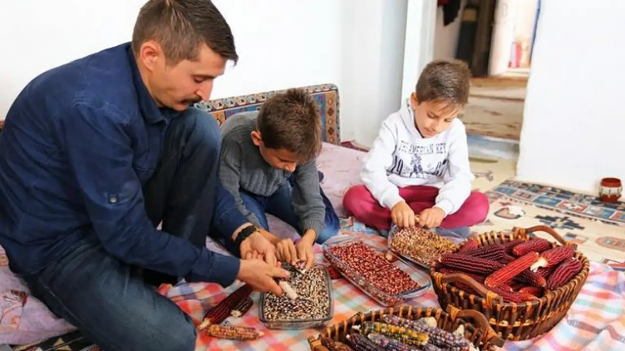 Merkeze bağlı İncesu köyünde yaşayan 35 yaşındaki Katman, bir belgeselde izleyip ABD'den getirdiği tohumlarla yetiştirdiği renkli mısırların ilk hasadını yaptı.