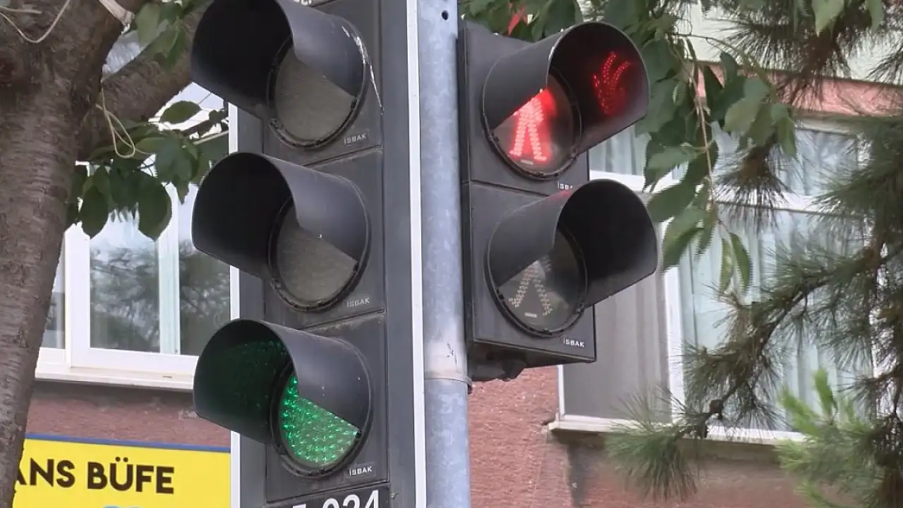 Renk değiştirmeyen trafik ışığı yayaya kırmızı, araçlara hep yeşil