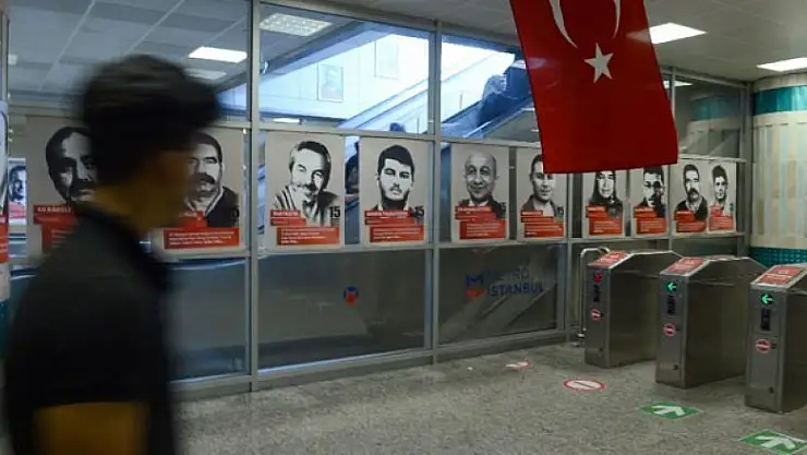 Yenikapı metro istasyonunun duvarları 15 Temmuz demokrasi şehitlerinin fotoğraflarıyla donatıldı.
