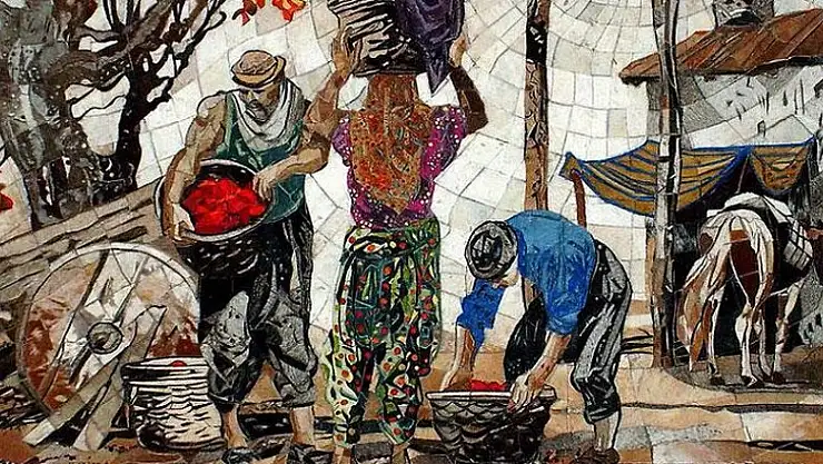 Eserlerinde at derisini mozaik gibi işleyen ressam Hasan Mirza, Gaziantep'te sergi açtı.