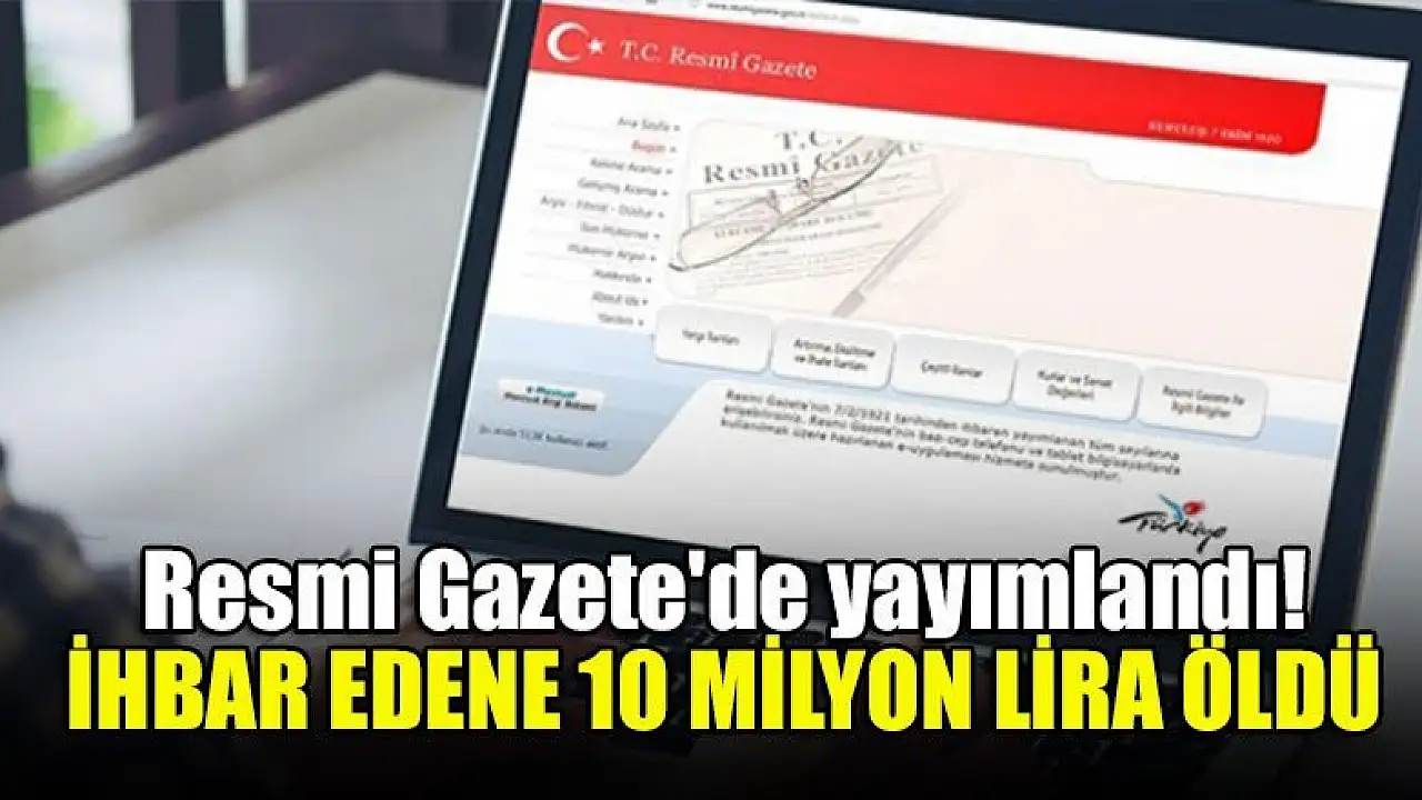 Resmi Gazete'de yayımlandı! İhbar edene 10 milyon lira öldü