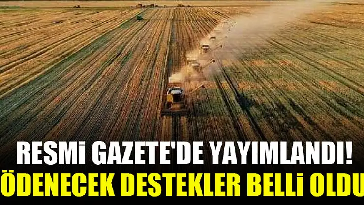 Resmi Gazete'de yayımlandı! Ödenecek destekler belli oldu