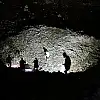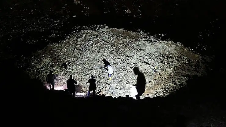 Geniş çapta çukurun oluştuğu bölgede bulunan parçalar incelenirken patlamanın nedeni araştırılıyor.