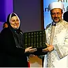 Mehmet Görmez, daha sonra 8 ciltlik eseri, Meridyen Derneği Başkanı Saliha Büyükdeniz'e takdim etti.