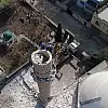 Vinç yardımıyla minarede çalışma yapan ekipler, çevredeki yapıların zarar görmemesi için kerpiçleri kırıcılarla yıkıyor.
