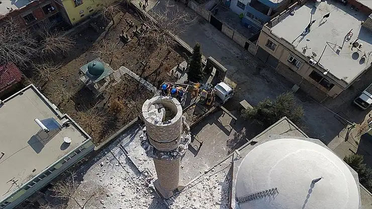 Abdalağa Mahallesi'nde yıkılma riski bulunan cami minaresinde yapılan kontrollerin ardından yıkım kararı alındı.