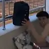 RİZE'de iki çocuk evlerinin balkonunda cep telefonuna bağlı hoparlörle ezan sesi yayını yaptı.