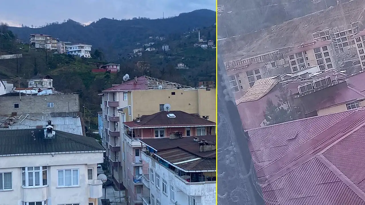 RİZE'de etkili olan fırtına nedeniyle bazı evlerin çatıları uçtu, ağaçların dalları koptu.