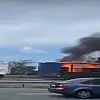 Rize'de seyir halindeki tırın dorsesi alev alev yanarak kullanılamaz hale geldi.