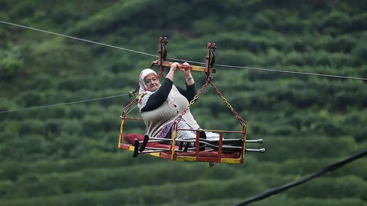Rahatsızlıklarından dolayı koltuk değneğine mahkum kadınlar, ulaşım için 150 metre uzunluğunda ve yerden 120 metre yükseklikteki ilkel teleferiği kullanıyor. Tehlikeye rağmen ilkel teleferiği kullanmaya mecbur olduklarını dile getiren kadınlar, yetkililerden yol sorununun çözümü için yardım bekliyor.