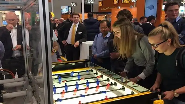 Dünyanın ilk yüksek seviye robotik langırt (masa futbolu) oyuncusu, Almanya Hannover'de sergilendi.