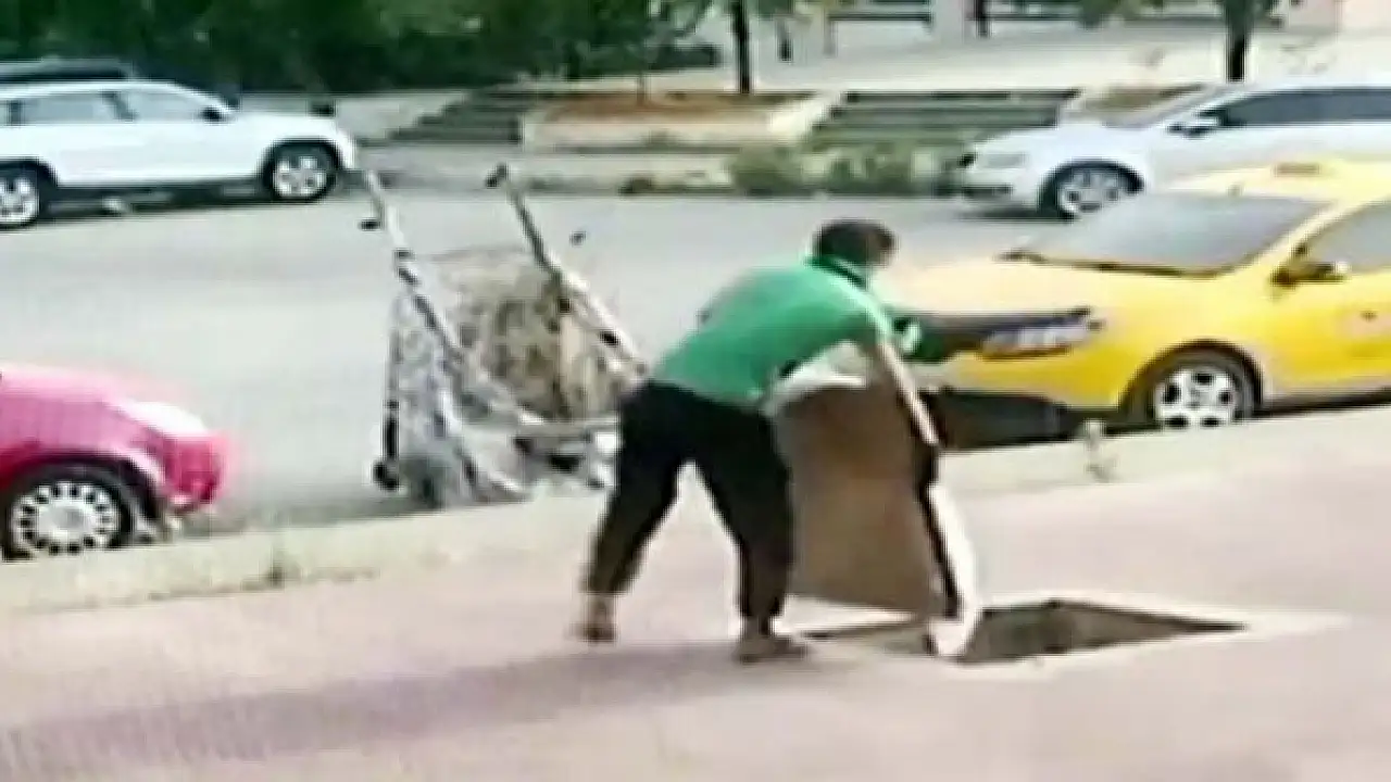 GAZİANTEP'te, bir apartmanın önündeki rögar kapağını çalan M.İ., güvenlik kamerası görüntülerinden yola çıkılarak yakalandı.