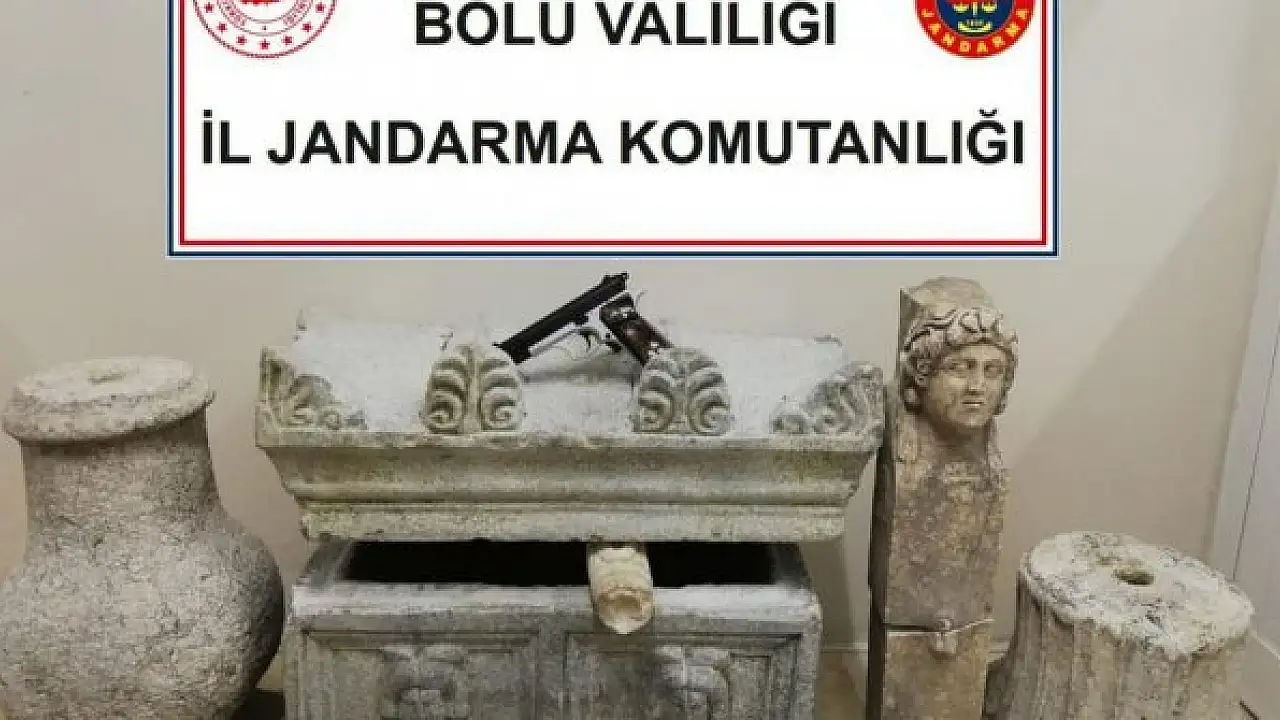 Bolu Jandarma Komutanlığı Kaçakçılık ve Organize Suçlarla Mücadele Şube Müdürlüğü ekipleri, evde tarihi eserler bulunduğu bilgisine ulaştı. Eve düzenlenen baskında 1 lahit, 1 heykel, 2 sütun kaide ve 1 tabanca ele geçirildi. Tarihi eserlerin, Roma dönemine ait olduğu tespit edildi. Tarihi eserler, Bolu Müze Müdürlüğü ekiplerine teslim edildi; 1 kişi de gözaltına alındı.