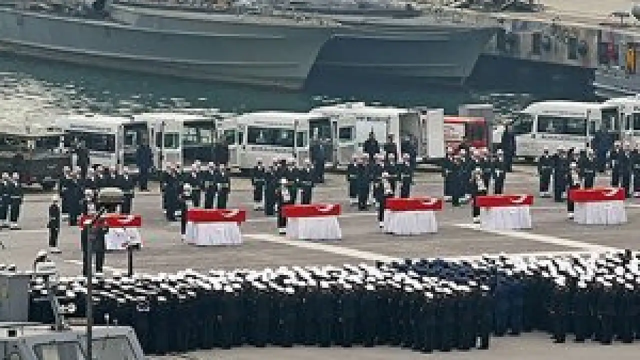 İzmir Tersanesi'nde römorkörün yan yatması sonucu meydana gelen kazada şehit olan 10 askeri personel için tören düzenlendi.