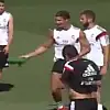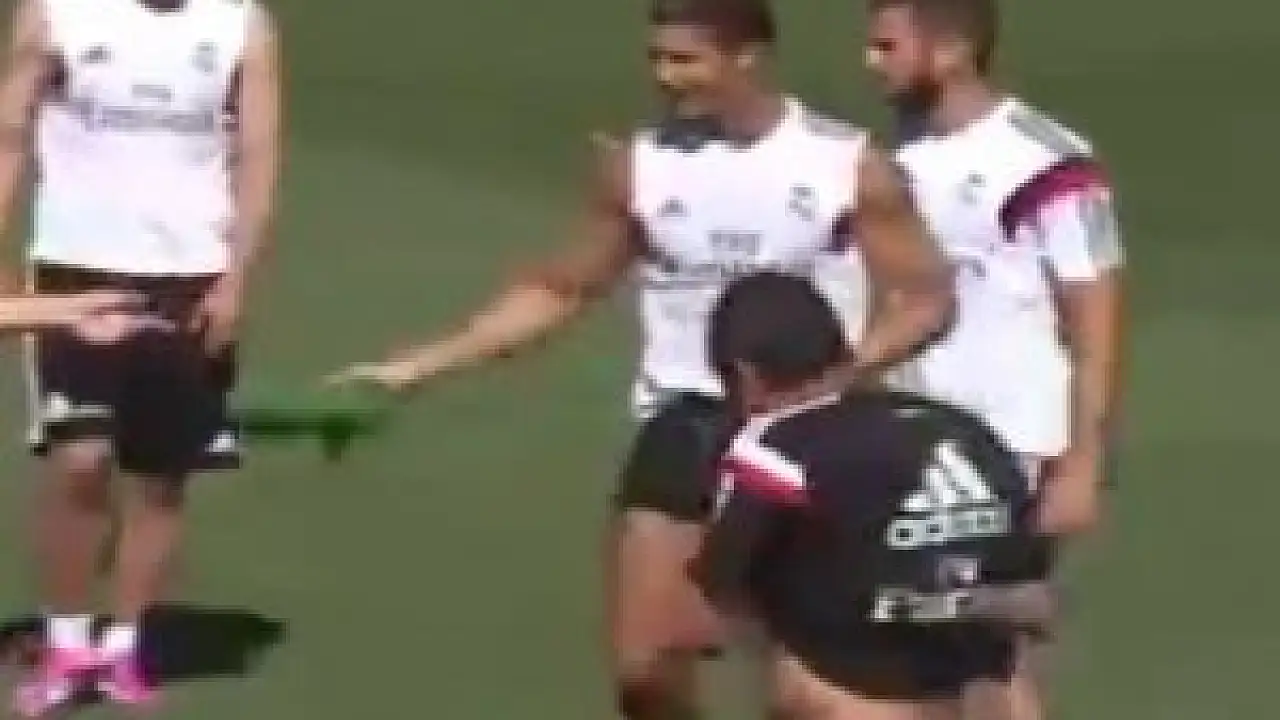 Real Madrid'in iki flaş transferi Toni Kroos ve Jamez Rodriguez, antrenmanda top kapma çalışması sırasında süper star Cristiano Ronaldo'yu çılgına çevirdi.