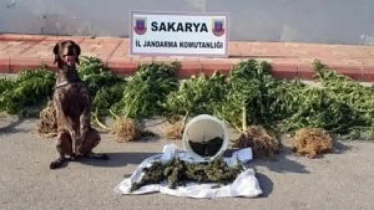 Sakarya'da İl Jandarma Komutanlığı ekipleriyle birlikte uyuşturucu baskınlarına götürülen 'Labrador' cinsi narkotik köpeği 'Rozet' son baskında ele geçirilen 2 bin kök hintkeneviri ele geçirildi.