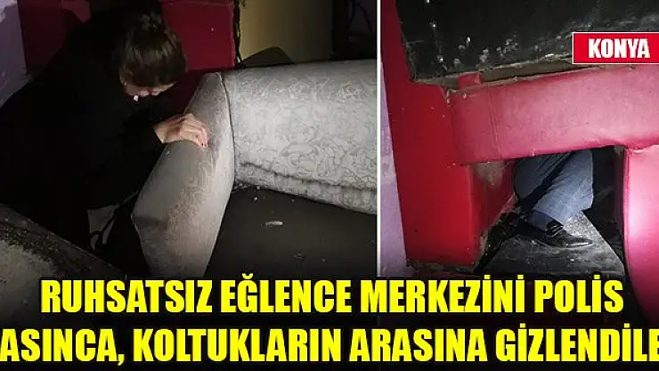 KONYA'da polis, koronavirüs tedbirleri kapsamında kapalı olması gereken barın, sokağa çıkma kısıtlaması saatleri içerisinde açık olduğu ihbarı üzerine işletmeye baskın yaptı. Baskın sırasında polisten saklanmak isteyen barda çalışan kadınlar ve bazı müşteriler, üst üste konularak gizli bölme haline getirilen koltuklar arasına saklandı. Toplamda 57 kişiye 3 bin 150'şer TL'den toplam 179 bin 550 TL idari para cezası uygulandı.