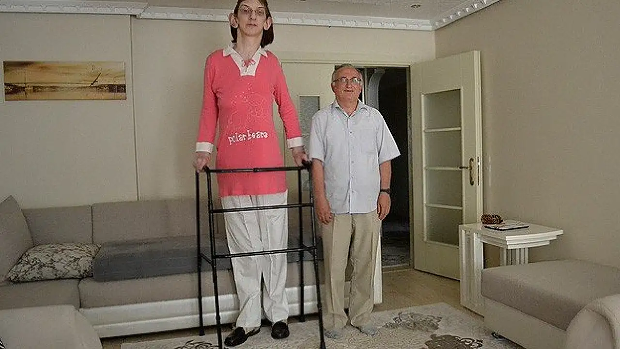 Dünyada çok az kişide görülen, 17 yaşındaki Weaver sendromu hastası Rümeysa Gelgi, 2,13 metrelik boyuyla Guinnes Rekorlar Kitabı'na girdi.