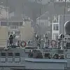 Sarayburnu önünden ilerleyerek İstanbul Boğazı'nı geçen gemideki bazı üniformalı askerlerin kamera ve fotoğraf makineleriyle çekim yaptıkları görüldü.