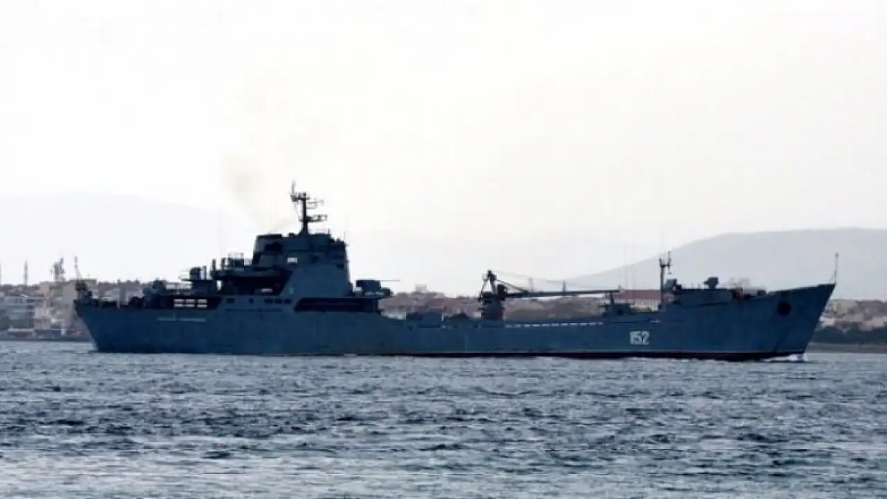 Rus donanmasına ait askeri gemi, Suriye krizinin gölgesinde Çanakkale Boğazı'ndan geçti.