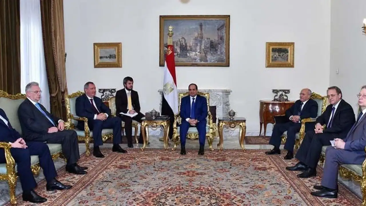 Resmi temaslarda bulunmak için Mısır'a gelen Rusya Başbakan Yardımcısı Rogozin, beraberindeki heyetle Cumhurbaşkanı Sisi tarafından başkent Kahire'deki İttihadiyye Sarayı'nda kabul edildi.