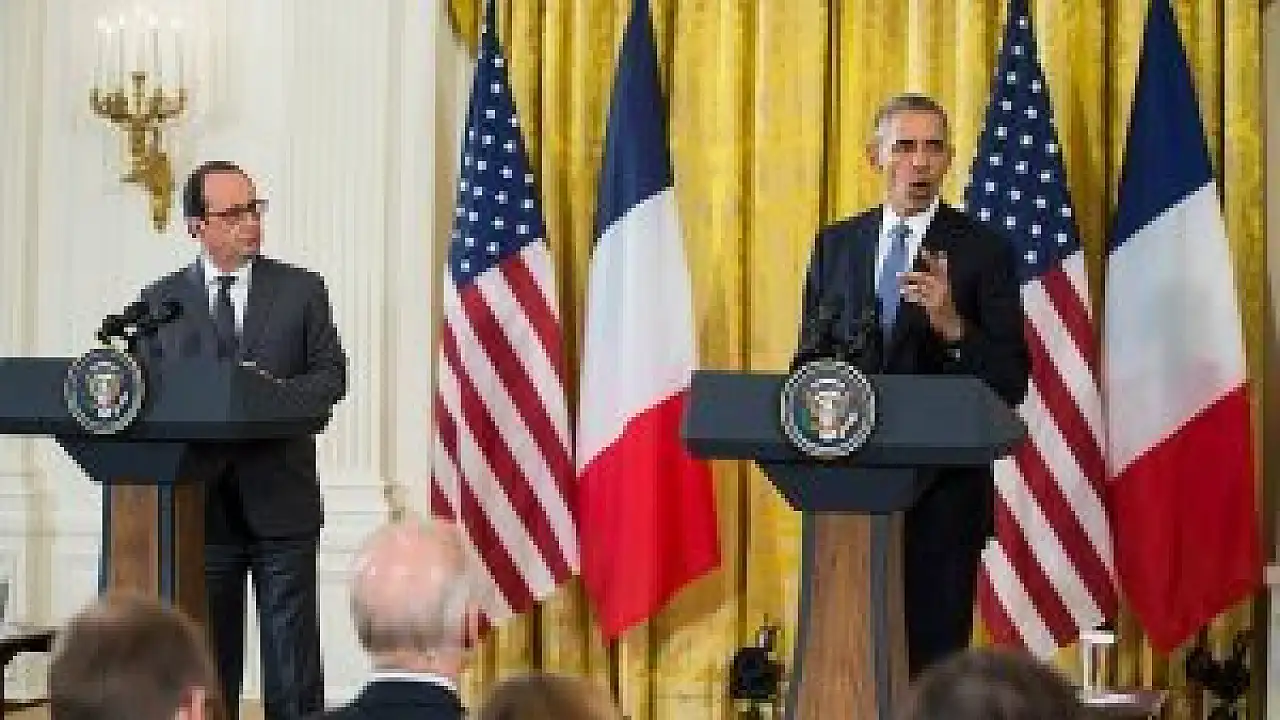 Obama, Beyaz Saray'da biraraya geldiği Fransa Cumhurbaşkanı François Hollande ile ortak basın toplantısı düzenledi.