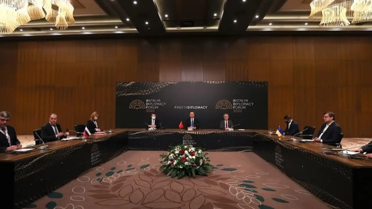 Rusya-Ukrayna-Türkiye üçlü dışişleri bakanları toplantısı, Türkiye'nin arabuluculuğu ile Antalya Diplomasi Forumu marjında Antalya'da düzenlendi
