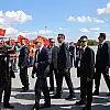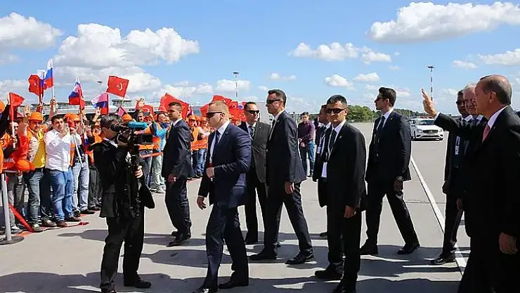 Karşılamaya katılan Rusya'da çalışan Türk işçiler, ellerindeki Türk ve Rus bayraklarıyla "Dik dur eğilme bu millet seninle", "Türkiye seninle gurur duyuyor" şeklinde slogan atarak Erdoğan'a sevgi gösterisinde bulundu.