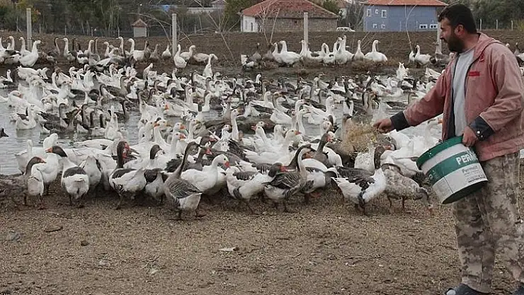 Rusya'da bir çiftlikten esinlenerek köyünde kaz yetiştiriciliğine başlayan Yozgatlı Emrah Ölmez, otel ve restoranların taleplerini karşılamaya çalışıyor.