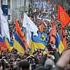 Kalabalık, " Rusya veUkrayna kardeştir" ve "savaşa hayır" şeklinde pankartlar açtı, bu yönde sloganlar attı. Mitinge, muhalif müzik grubu Pussy Riot üyeleri Nadejda Tolokonnikova ve Mariya Alyohina da katılarak destek verdi.