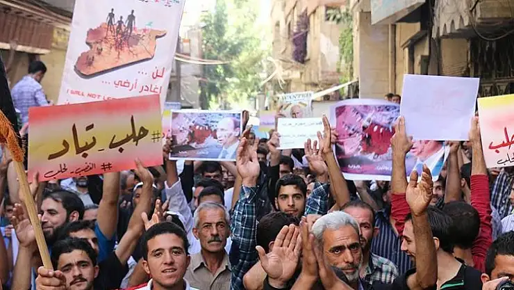 Esed rejimine destek veren Rusya Devlet Başkanı Vladimir Putin'in posterlerini yakan bazı göstericiler, ''Rusya, Suriye halkının düşmanıdır. Putin Halep'i yakıyor'' dövizleri taşıdı.