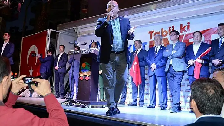 Referandum çalışmaları kapsamında Antalya'da temaslarını sürdüren Çavuşoğlu, Finike ilçe meydanında halka hitaben yaptığı konuşmada, ilçeye yaptıkları yatırımları anlattı.