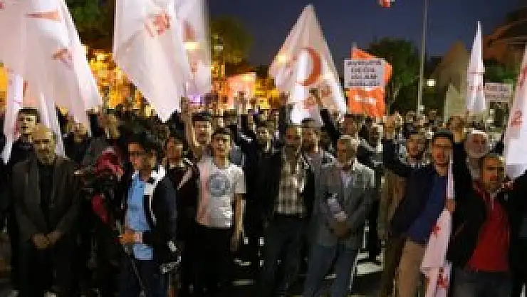 Konya Hükümet Meydanı'nda bir araya gelen Saadet Partili bir grup, Mısır'da darbeyle görevinden uzaklaştırılan, seçilmiş Cumhurbaşkanı Muhammed Mursi'nin idama mahkum edilmesini protesto etti.