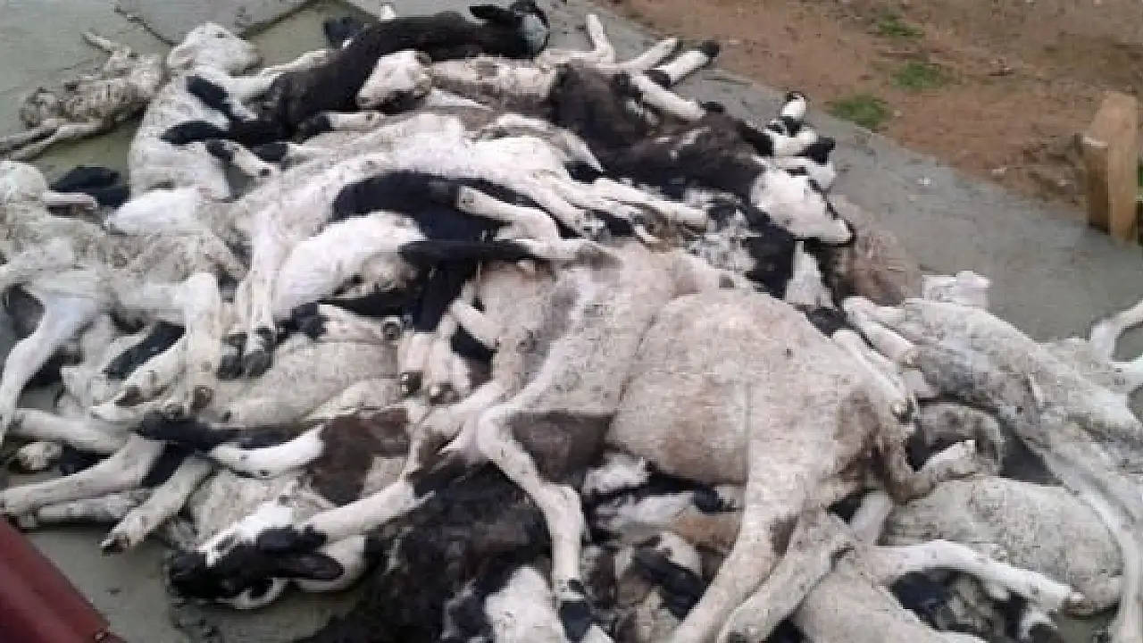 Köyde faaliyet gösteren bir çiftlikte henüz belirlenemeyen bir nedenle telef olan ve leşleri ortada bırakılan küçükbaş hayvanlar köy halkını tedirgin etti.