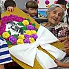 Sürpriz doğum günü pastasını keserken duygulanan Özar, elini öpüp, doğum gününü kutlayan öğrencilere hediyeler dağıttı.