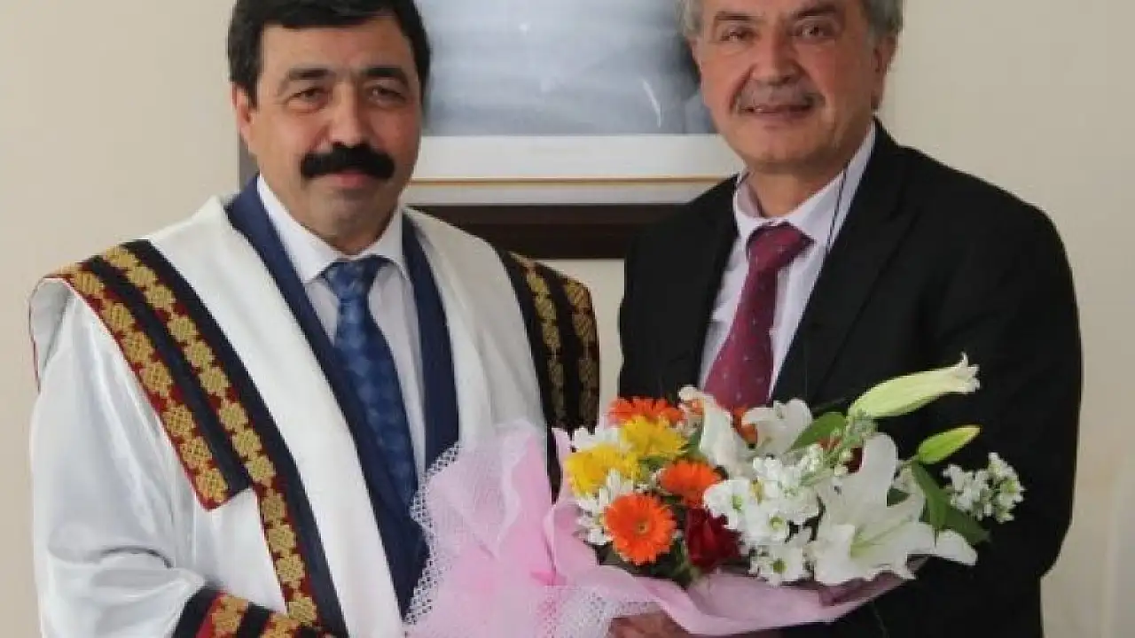 Rektör Prof.Dr. Köse, devir teslim töreni bitiminde görevi devraldığı Rektör Vekili Prof.Dr. Mehmet Tokaç’a hediye takdiminde bulundu.