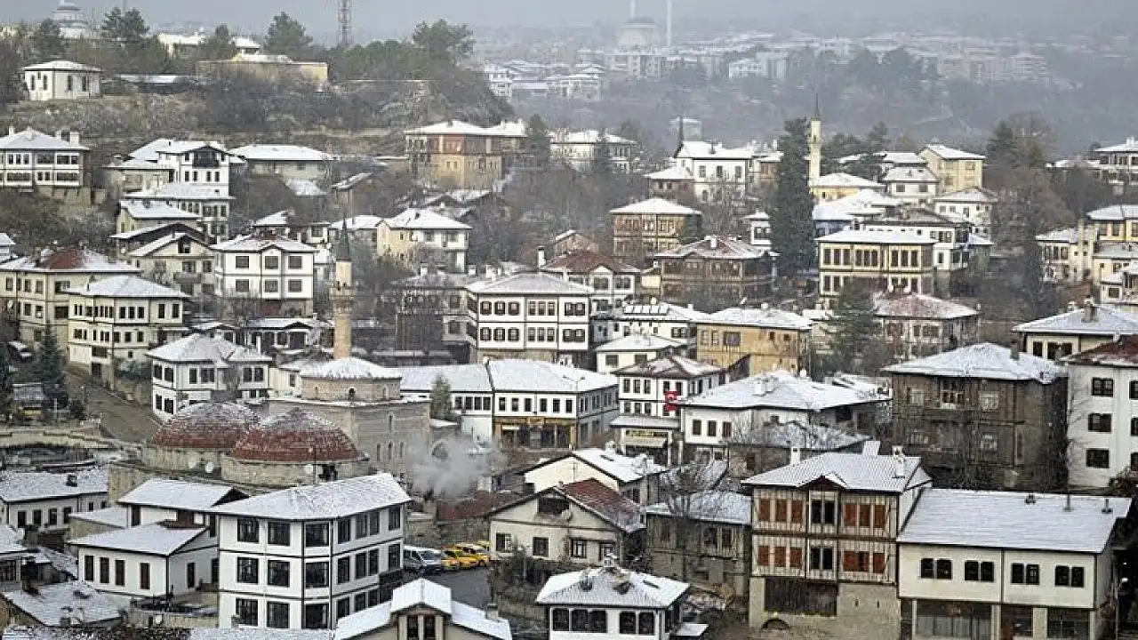 Safranbolu konakları beyaza büründü