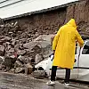 Sağanak nedeniyle yıkılan istinat duvarı 3 aracın üstüne çöktü