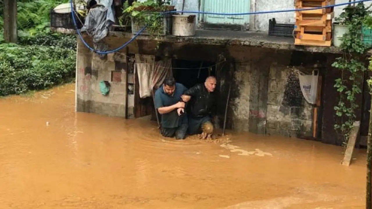 Rize'de sabah saatlerinde başlayıp etkisini artıran sağanak, sele neden oldu. Merkeze bağlı Muradiye beldesinde, taşan dere beldeyi su altında bıraktı.