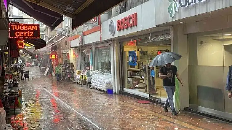 Sağanak yağışa hazırlıksız yakalandılar, dükkanlara sığındılar