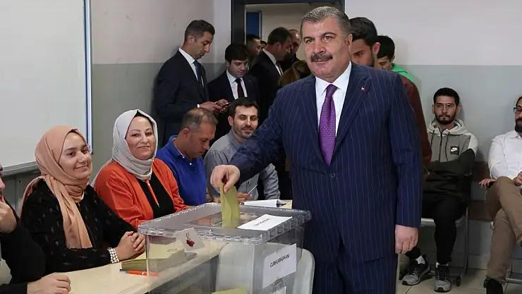 Sağlık Bakanı Fahrettin Koca, Cumhurbaşkanlığı Seçimi ikinci turu için oyunu kullanacağı Saffet Çebi Ortaokulu'na geldi. Bakan Koca'ya eşi Hale Koca ve oğulları Zahid Esat ile Abdülaziz Emir Koca da eşlik etti. Bakan Koca, burada vatandaşlarla da sohbet etti. Oy kullanacağı sınıfa giren Bakan Koca, sandık görevlileriyle de tek tek selamlaştı. Bakan Koca ve ailesi 3280 nolu sandıkta oy kullandı.