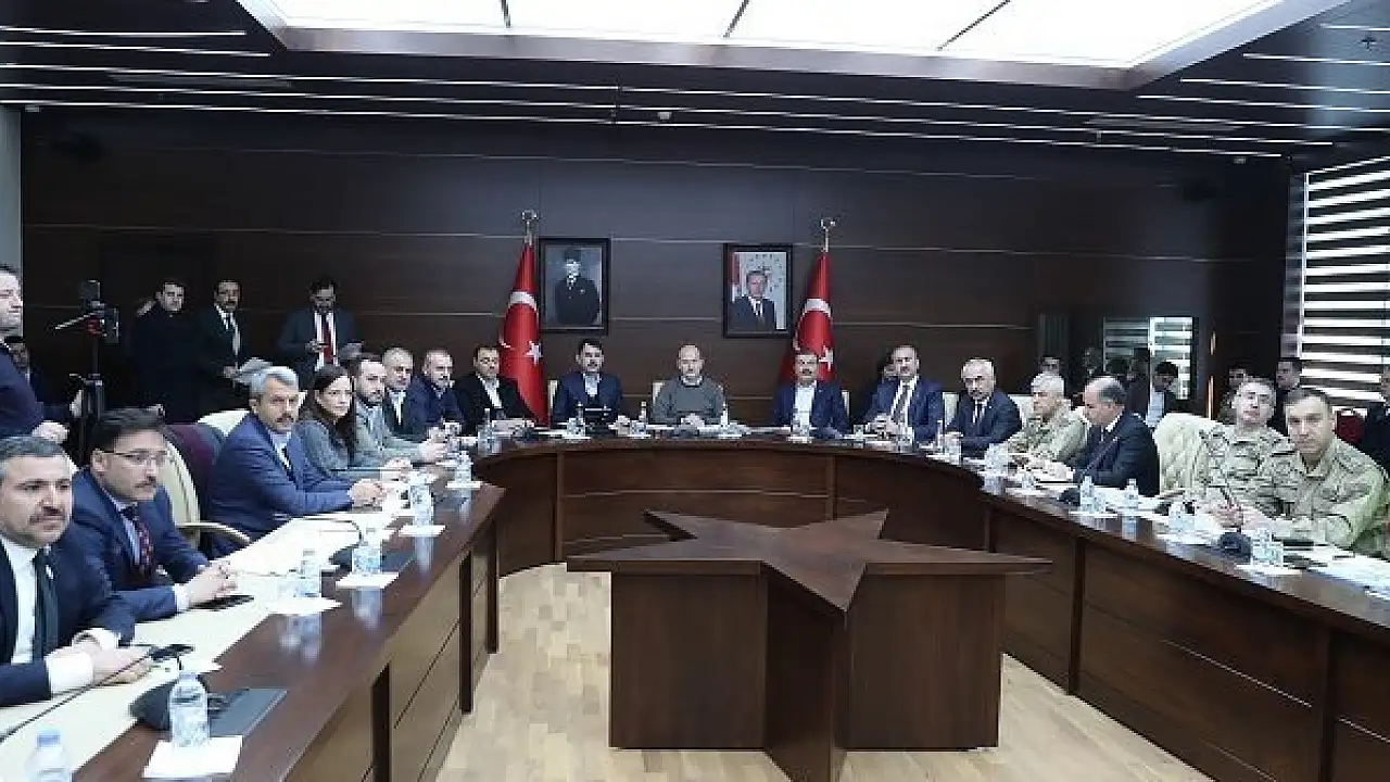 İçişleri Bakanı Süleyman Soylu, Adalet Bakanı Abdulhamit Gül , Sağlık Bakanı Fahrettin Koca ile Çevre ve Şehircilik Bakanı Murat Kurum, Elazığ Valiliğinde Değerlendirme toplantısına katıldı.