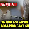 "En çok aşı yapan ülkeler arasında 6'ncı sıradayız. Bizden daha fazla aşı yapan ülkeler ABD, Çin, Hindistan, İngiltere ve Brezilya'dır. Türkiye, kendi aşısını henüz üretmemiş ülkeler içinde en çok aşı yapan ülkedir. Toplam doz sayısı bu mesajın yayına konduğu an itibarıyla 16 milyon 668 bin 844'tür."