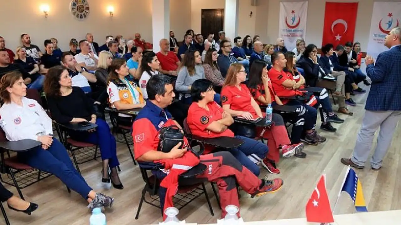 'Acil Sağlık Hizmetleri ve Afet Yönetimi Eğitim Programı' kapsamında, Bosna Hersek'ten gelen 41 sağlık personeline kendi dillerinde acil sağlık hizmetleri eğitimi veriliyor.